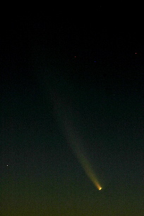 It gradually came into view in the still-bright south west, a slight blurr above the moon. As the sun and then the moon settled below the horizon and the sky darkened the comet brightened. eventually realised that its tail filled the whole sky; not something you could possibly see anywhere except in the dark dry clear Namibian sky. |