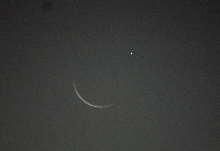 The Moon and Venus just before Venus was eclipsed. Tswana folklore has it that this is a healthy moon because the evil spirits are not tipped out of it. During the winter when the angle is greater it cannot hold teh spitits in and people become ill. |