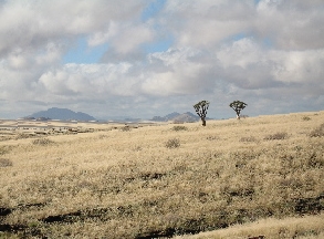 Its a curious feeling, lying under a Landrover having just heard your back snap, wondering how you are going to get yourself vertical again. Vertical I did eventually get but bending down to unscrew tight wheelnuts however was not on. Fortunately we had Sebastian with us. Sebastain was a young German who was here on his honeymoon and so unscrewing was but a minor deviation from his day-to-day activities. The new jack that the Afrikaner had given me as a birthday present worked a treat and Sebastian had the spare on in not time. For him, it was good training as he had to repeat it twice more over the weekend, my new Chinese innertubes came punctures included. At Solitaire the puncture man removed a 3 inch bolt from my tyre and patched it. Solitaire is in the middle of the desert; it used to be an old trading post visited a few times a week by the farmers and anyone else mad enough to get there. It has always been known for the excellence of its bread and for the skill of the puncture man. It was also the local telephone exchange and the lady in the trading post was the operator diverting the calls to any one of six lines. I remember once visiting there and there was an injured horned adder, a local endangered desert species, being nursed back to health by the 7 year old son of the owner; it was in a glass herbarium on the counter with an advisory note about the possible consequences of you putting your hand in it (gangrene and amputation). But that was 15 years and a world ago. Now it’s mains electricity, cell phones, Solitaire Lodge where the schoolroom used to be, and noisy Italian tourists enjoying Real Africa. |