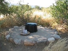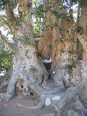 We camped in the dry Tsauchab riverbed, a set of camp sites under immense ancient fig trees. Afrikaners think its neat to build things in hollow trees; up in the north there is a Baobab that doubles as a post-office but here, a hollow fig was converted into a bathroom.