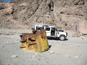 The way into the valley is via a track past the now derelict Khan mine some 25km upstream from my tree. For much of last century copper was mined there and a permanent community existed (its rubbish dump tells much about it, not least the huge number of brandy miniatures). This casting is part of a machine used to break up the ore; it was cast at the Phoenix Foundry in Stalybridge, Lancashire, of Robert Broadbent and Son, who I think also made the rivets that (still) hold up the Eiffel Tower. The Foundry is long closed; its site was recently home to the North of England Sausage Festival and an attempt on the world record for puppadum piling. Sic transit... |